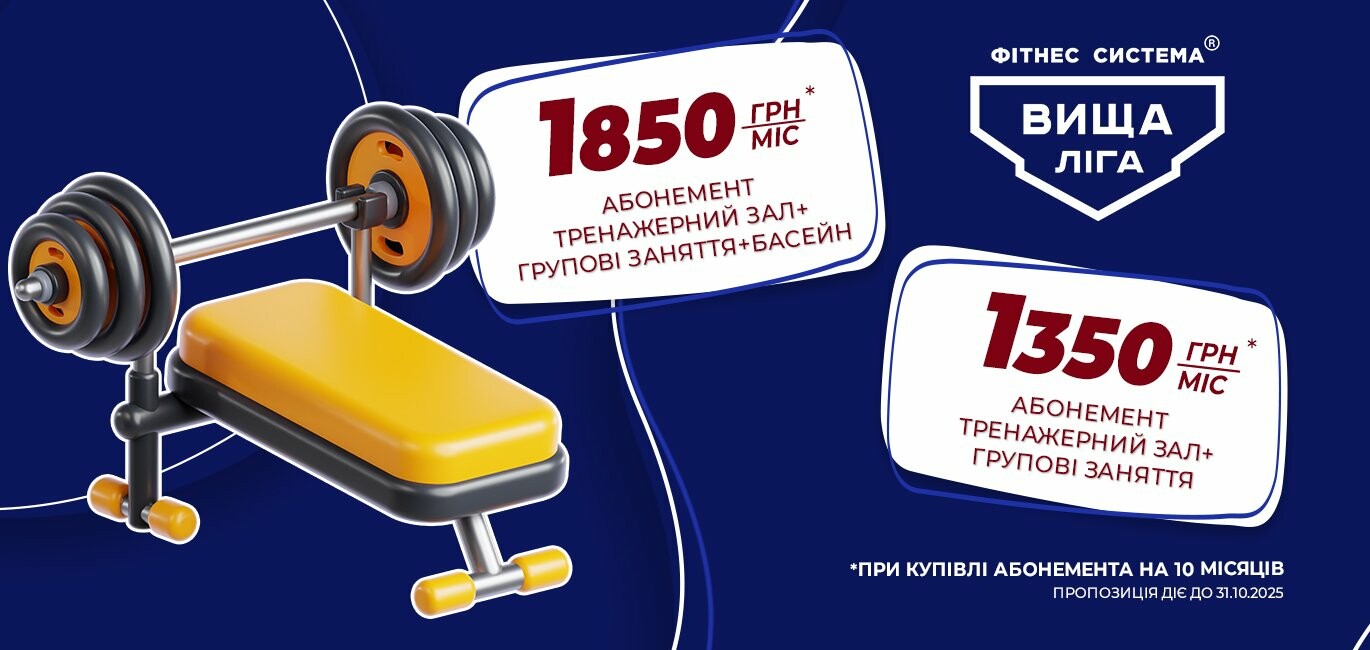 1850 гривень на місяць** (тренажерний зал + групові заняття+ басейн)
